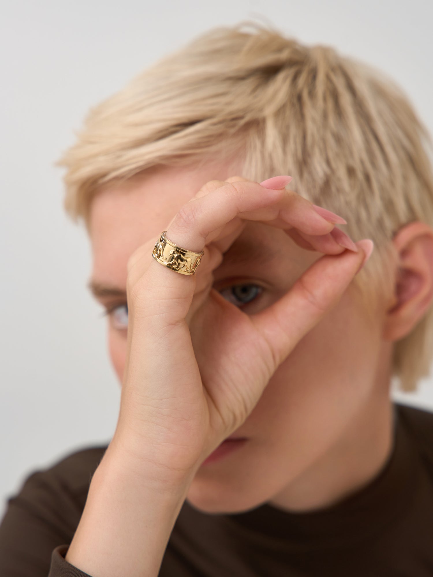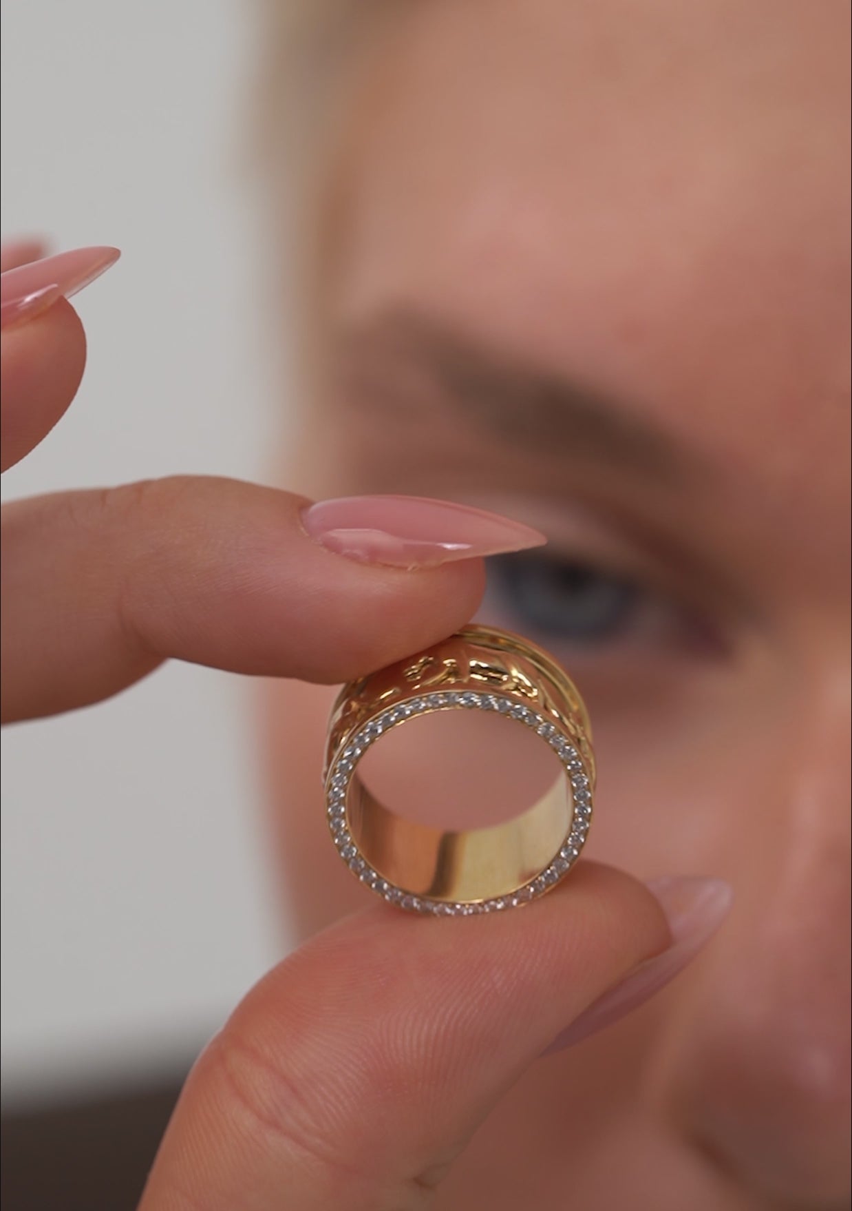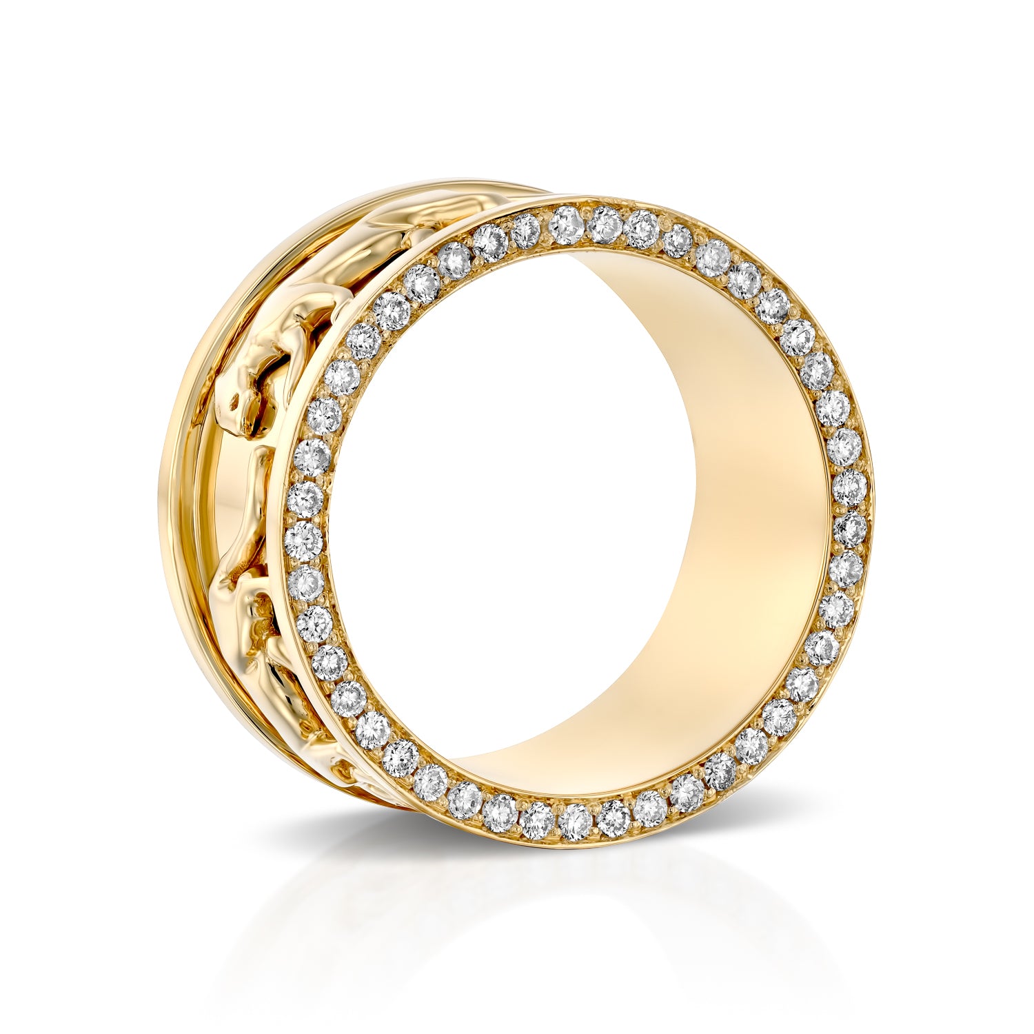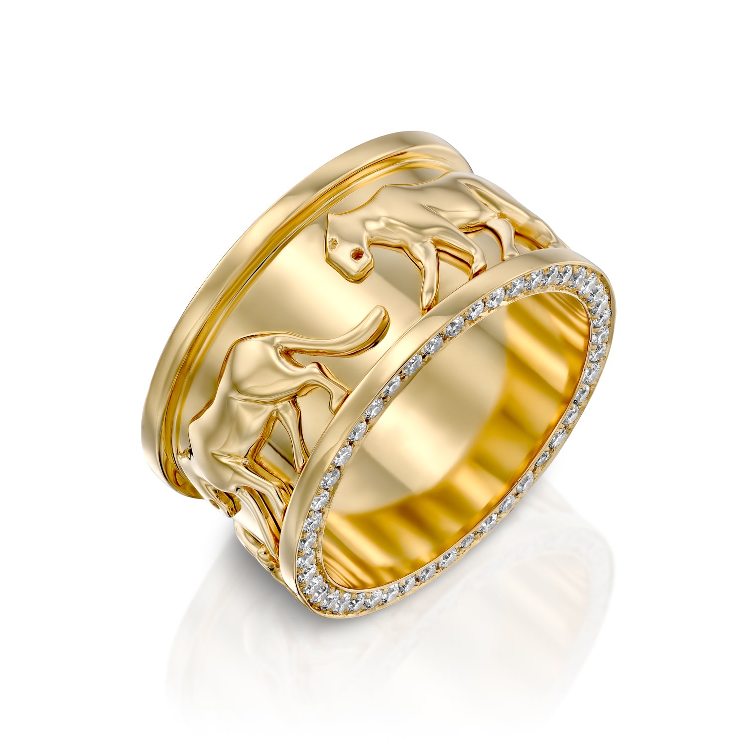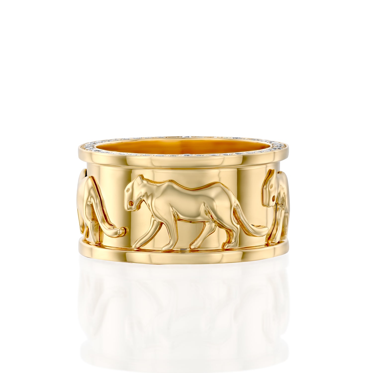 טבעת זהב 18 קראט בשילוב יציקת פנתרות