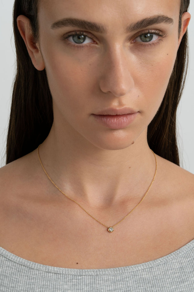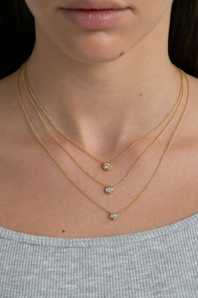 שרשרת זהב 18 קראט משובצת יהלום עגול בארבעה גדלים לבחירה