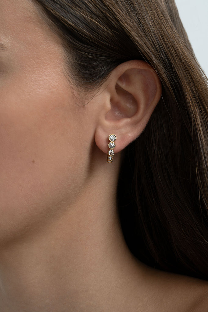 עגילי זהב 18 קראט בשיבוץ יהלומי מעבדה בשורה מדורגת