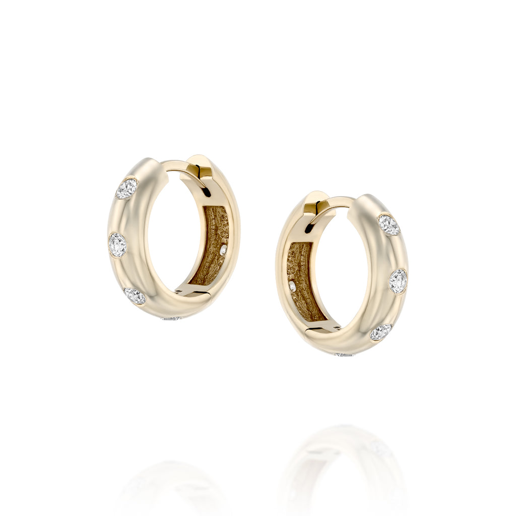 עגילי חישוק זהב 18 קראט בשיבוץ יהלומי מעבדה 0.45 קראט לזוג