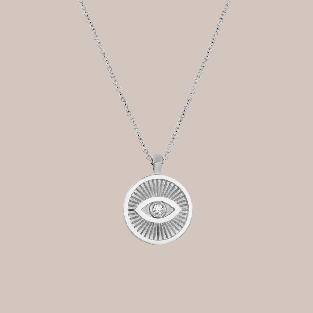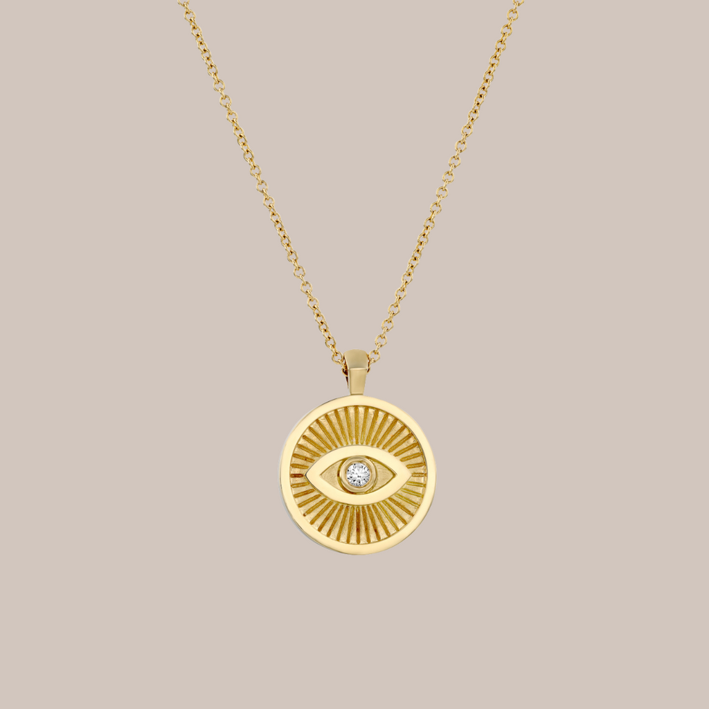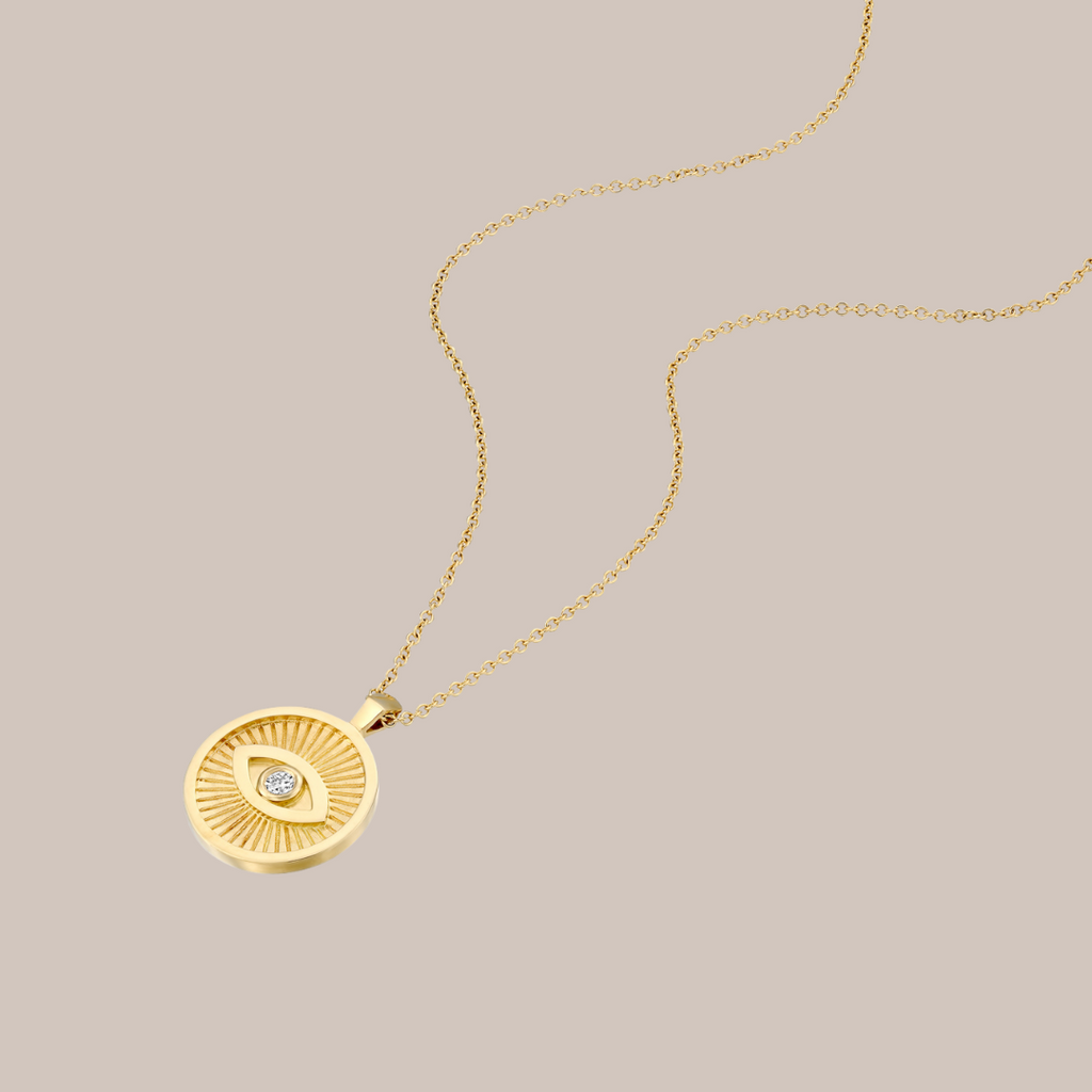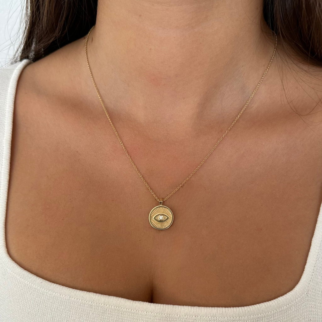 שרשרת תליון זהב 14 קראט בעיצוב עין, משובץ יהלום מעבדה 0.05