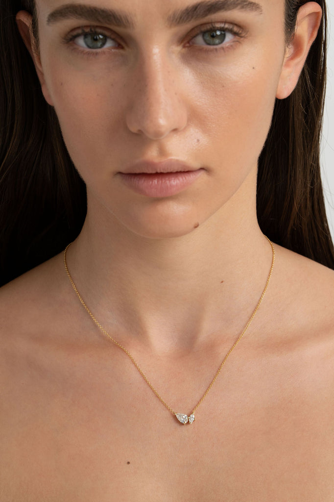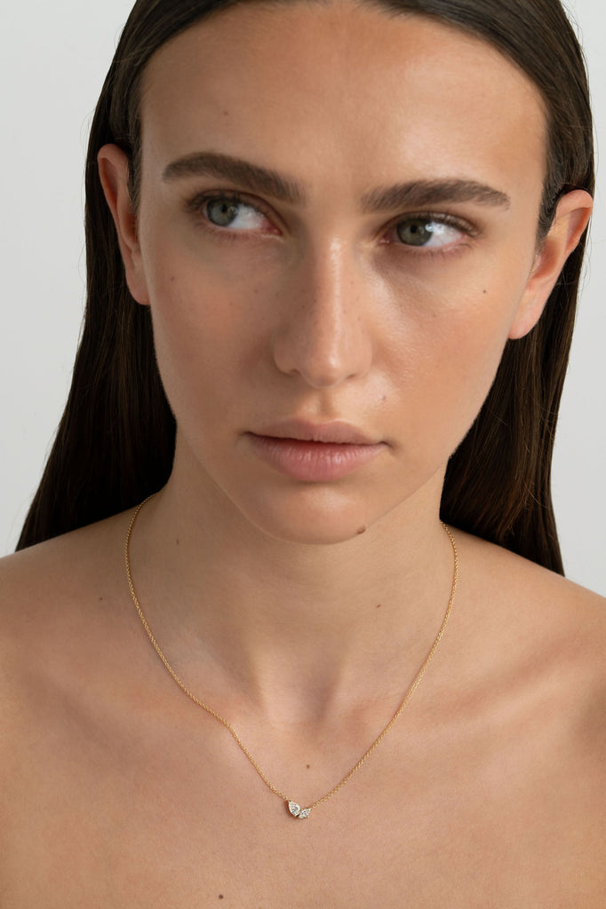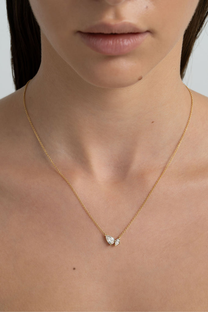 שרשרת זהב 18 קראט בשיבוץ יהלום טיפה ויהלום מרקיזה