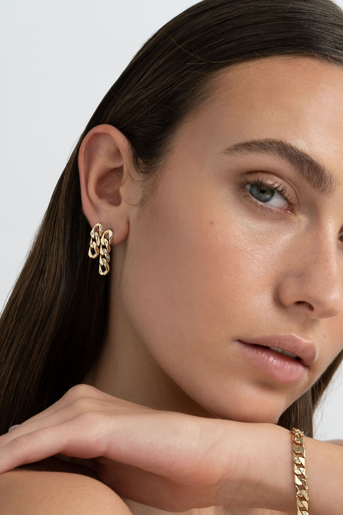 עגילי חוליות גורמט א-סימטריים בזהב 14 קראט