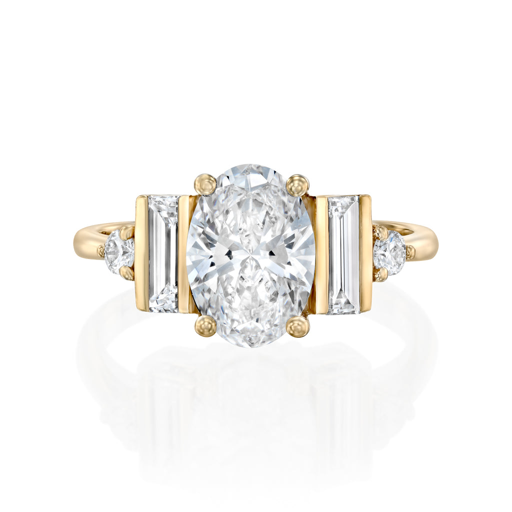 ,טבעת זהב 18 קראט משובצת יהלום אובל מרכזי