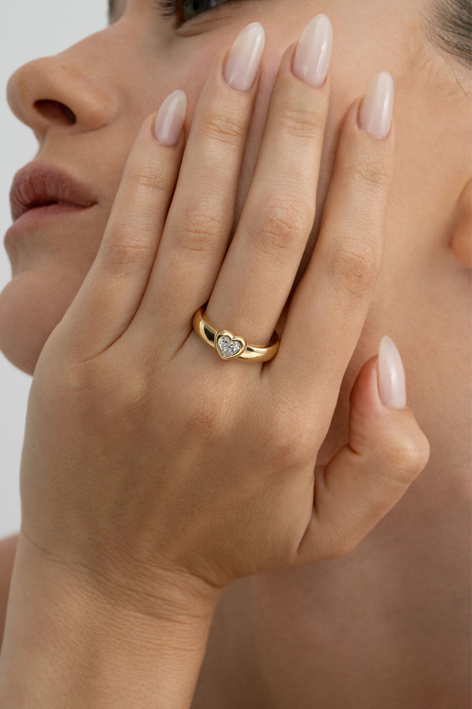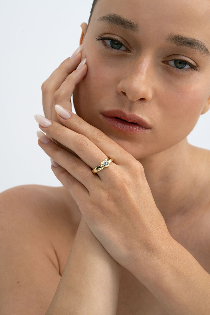 טבעת חותם זהב משובצת יהלום לב 0.5 קראט