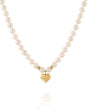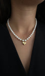 שרשרת פנינים קלאסית בשילוב חרוזי זהב ותליון לב מזהב צהוב 18 קראט