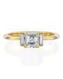 טבעת זהב 18 קראט משובצת יהלום אשר קאט וזוג באגטים