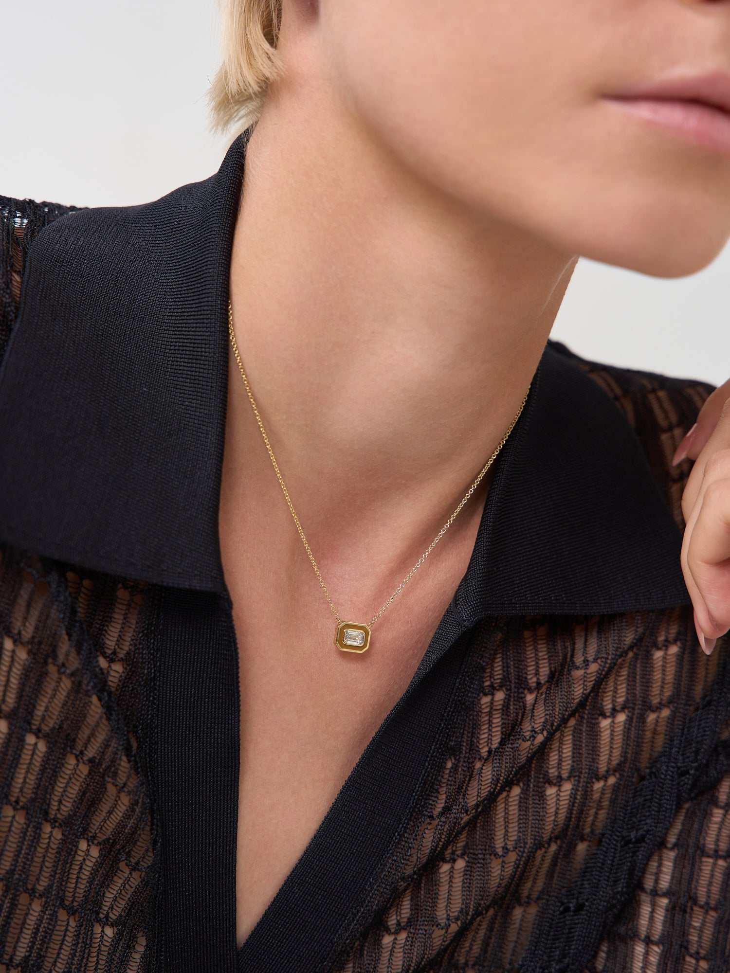 שרשרת זהב 18 קראט עם תליון משובץ יהלום אמרלד
