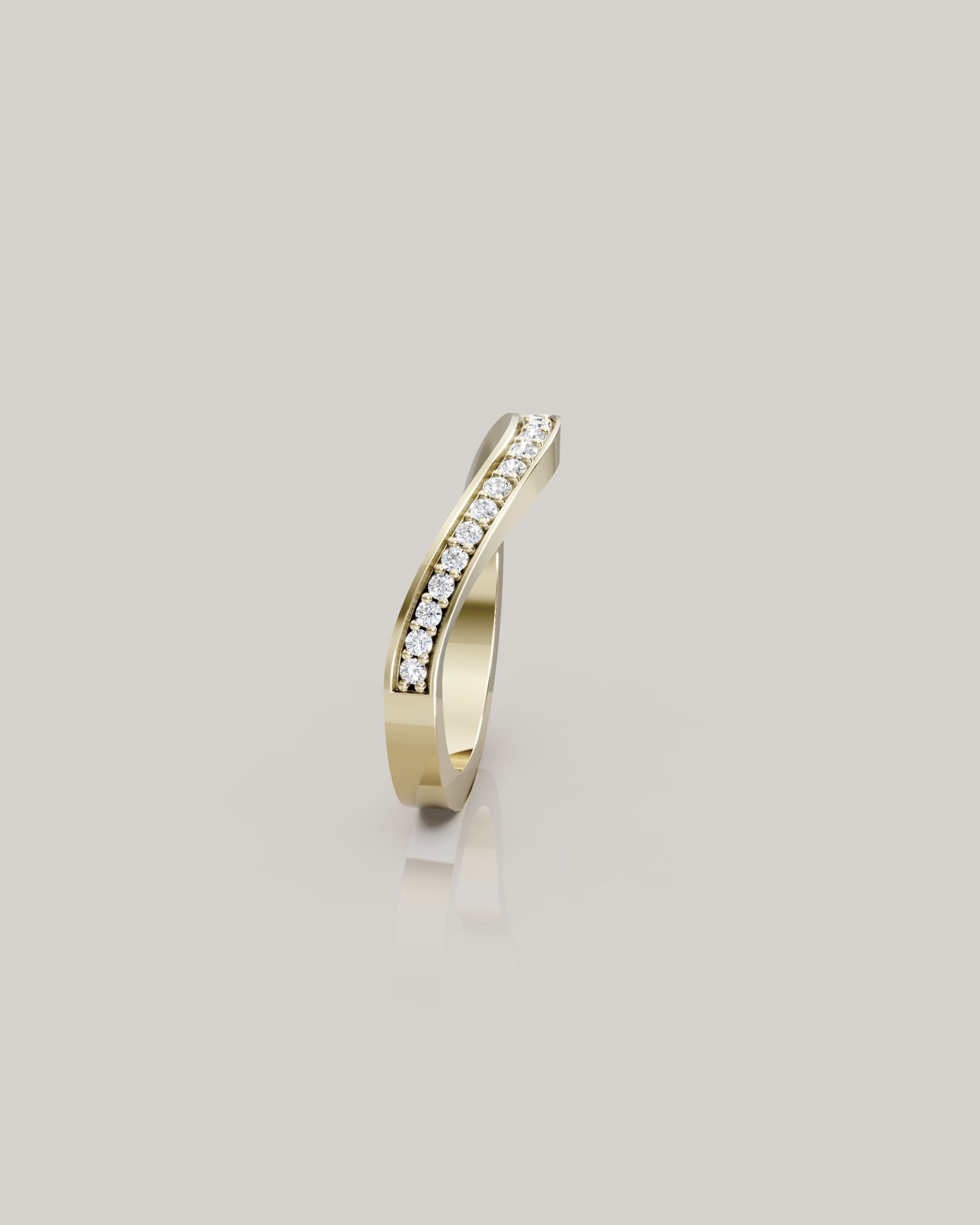 יהלומים קטנים לאורך החלק הקדמי של הטבעת