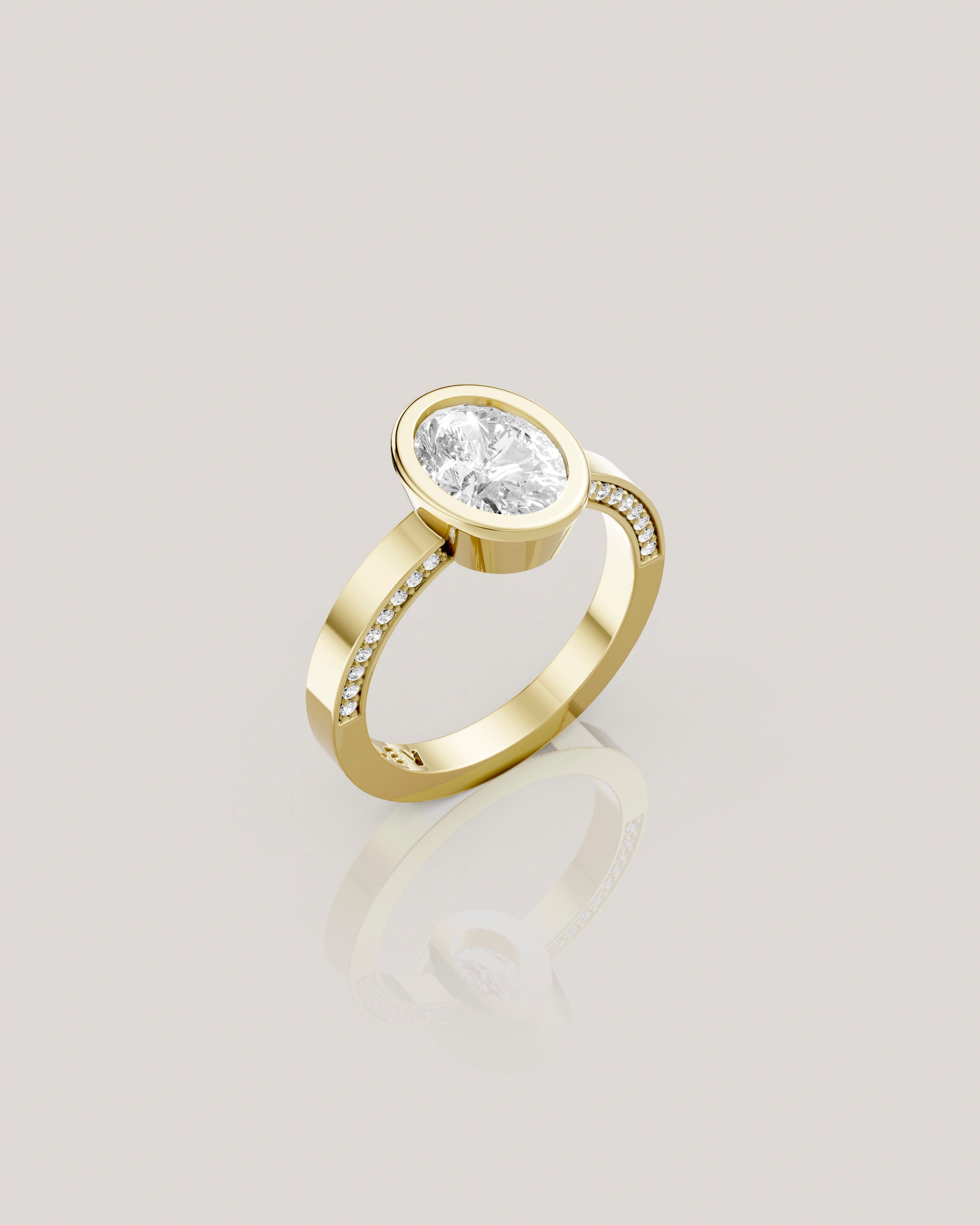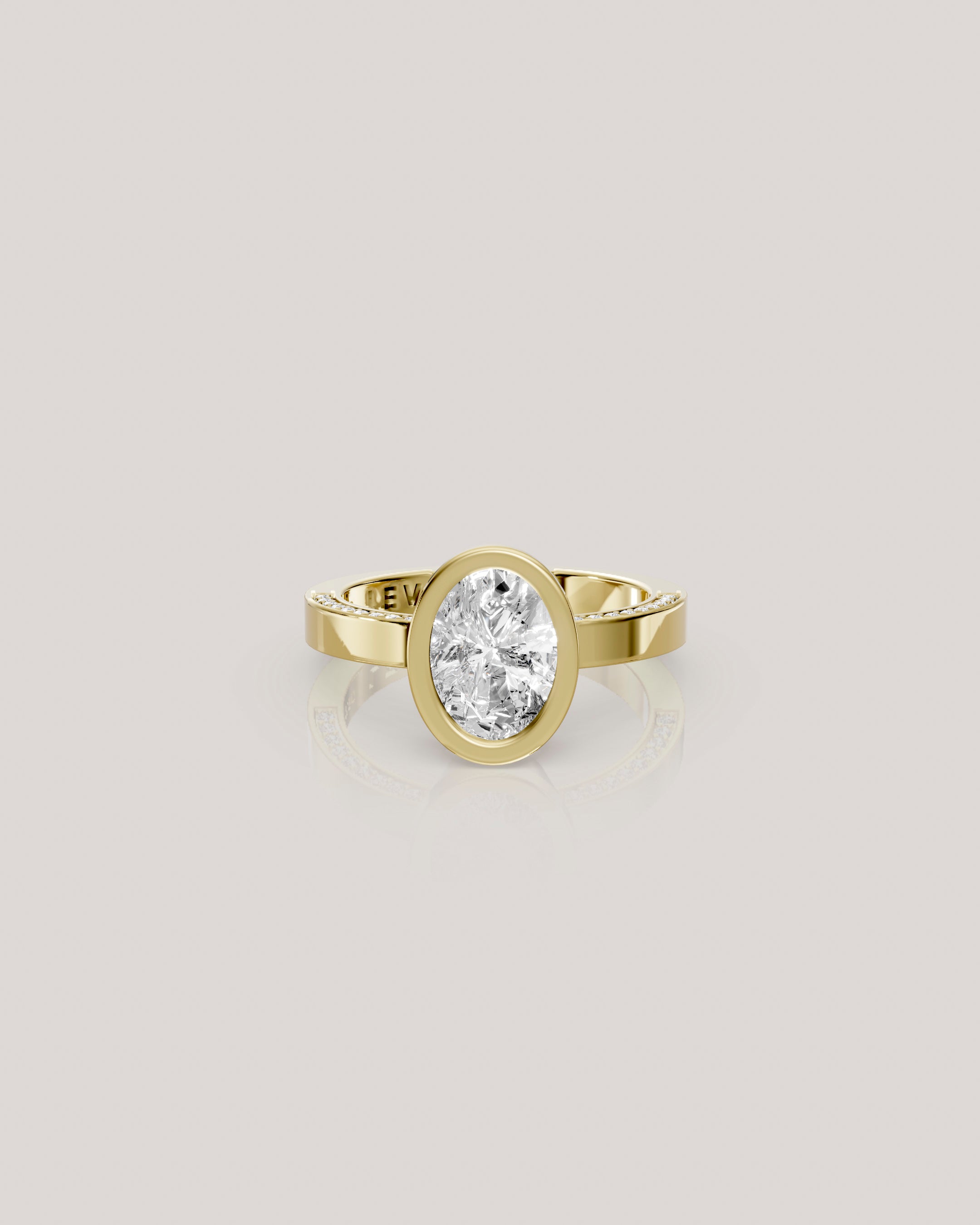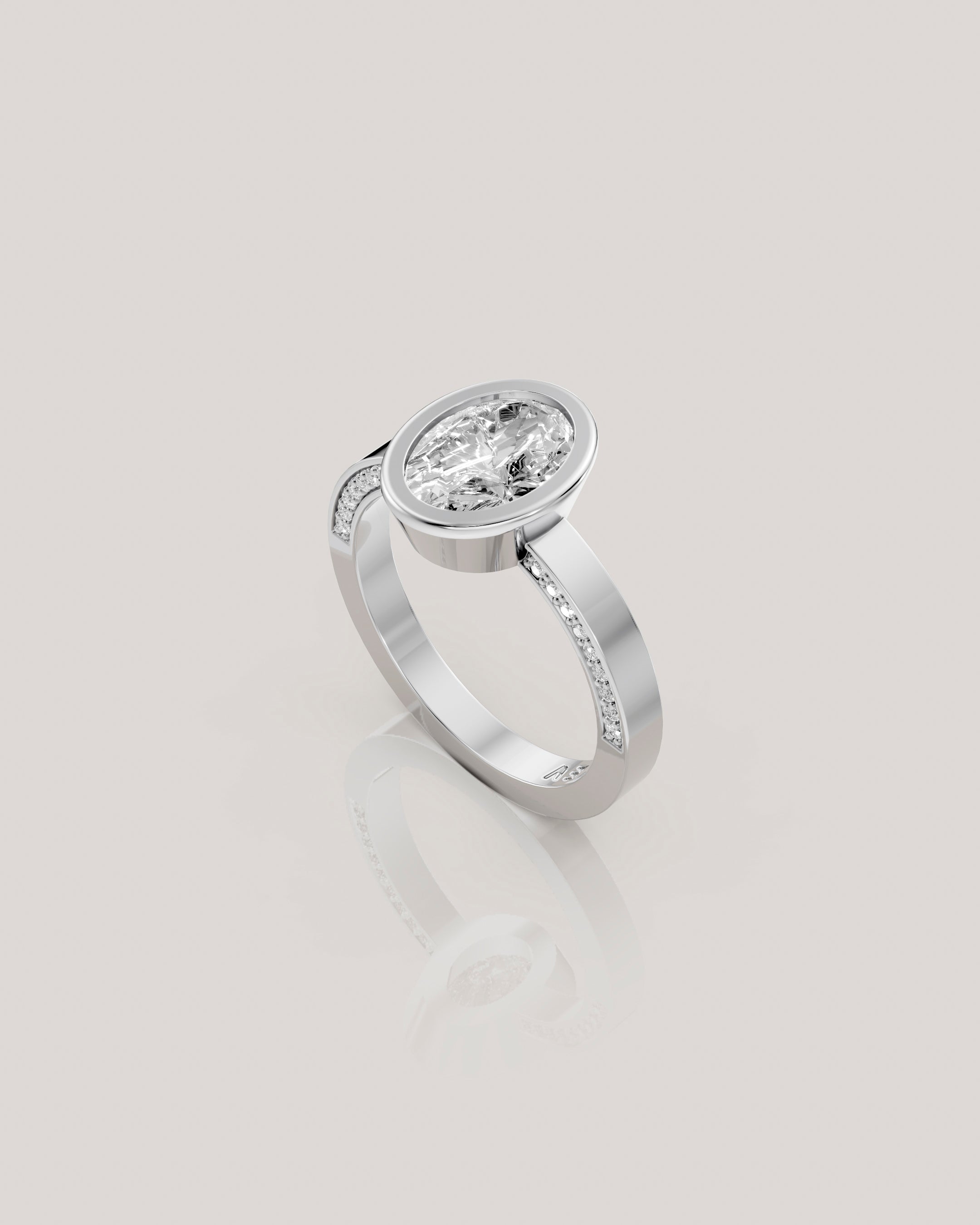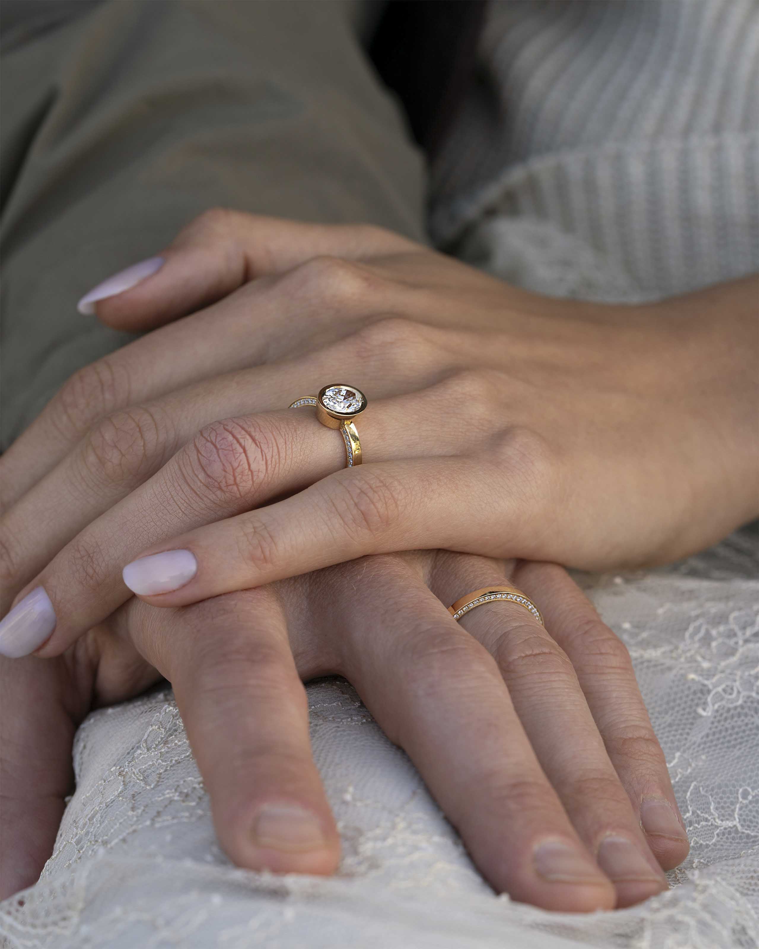 ושיבוץ יהלומים קטנים לאורך שתי הדפנות הפנימיות בטבעת