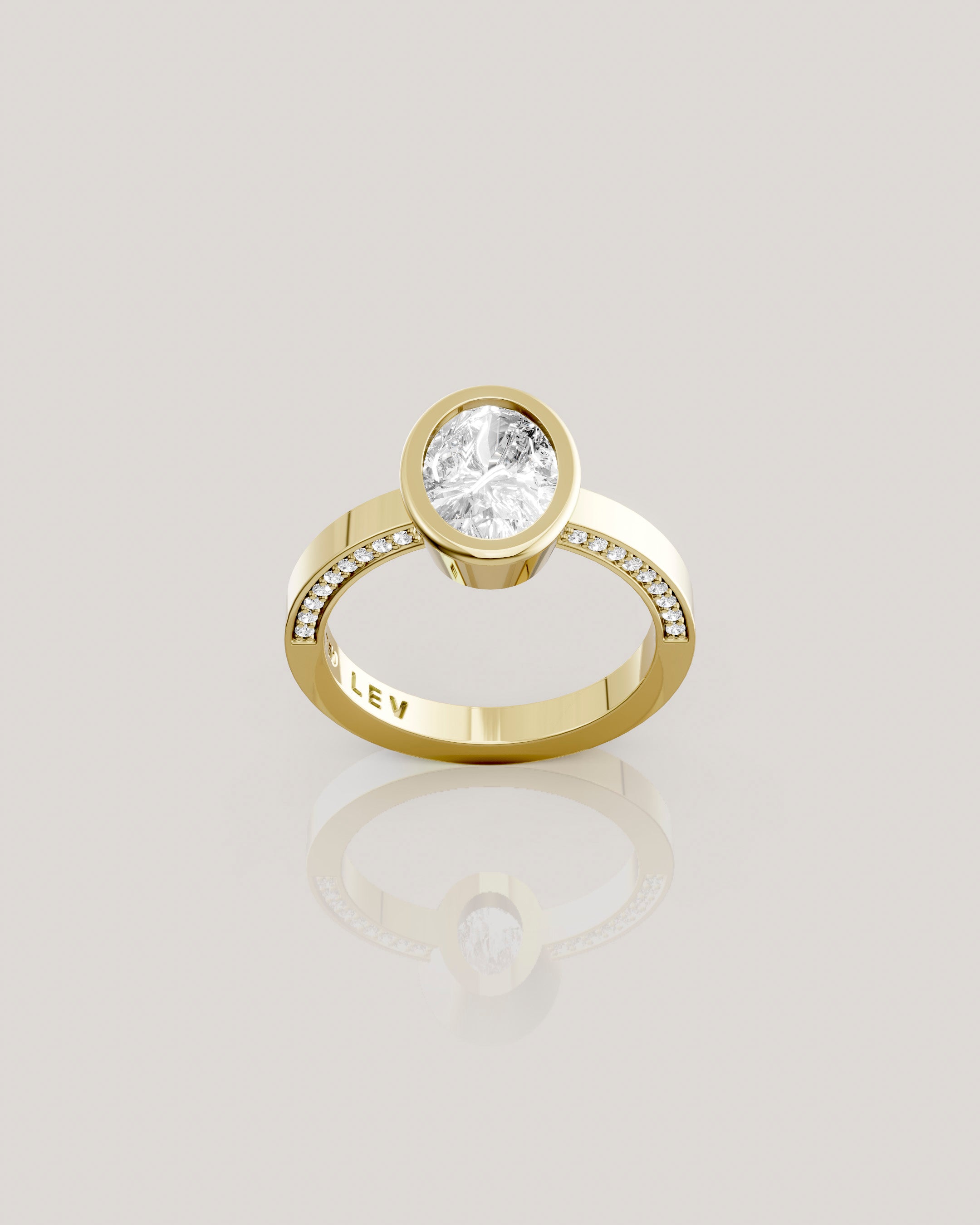 טבעת זהב 18 קראט משובצת יהלום אובל מרכזי
