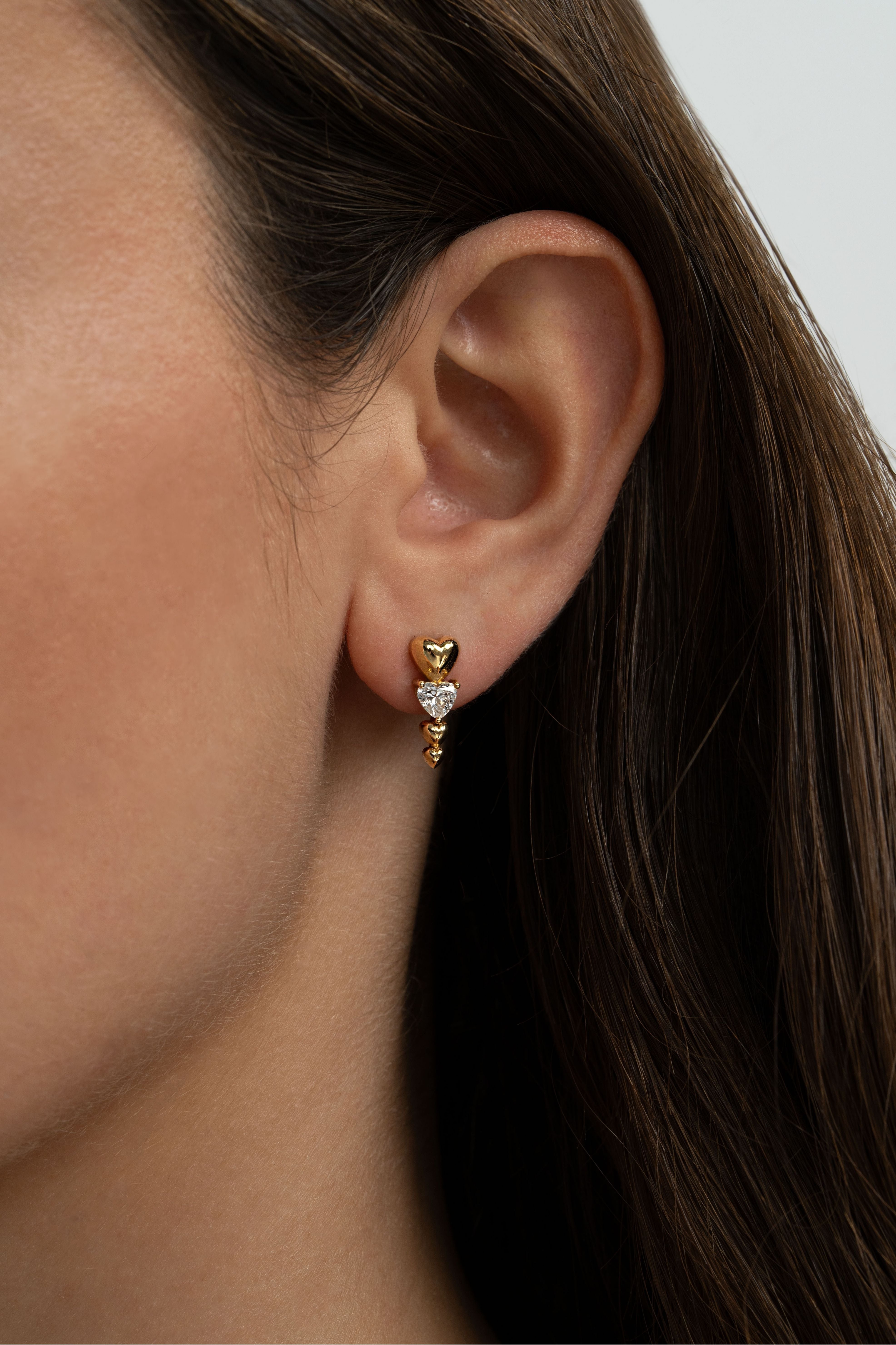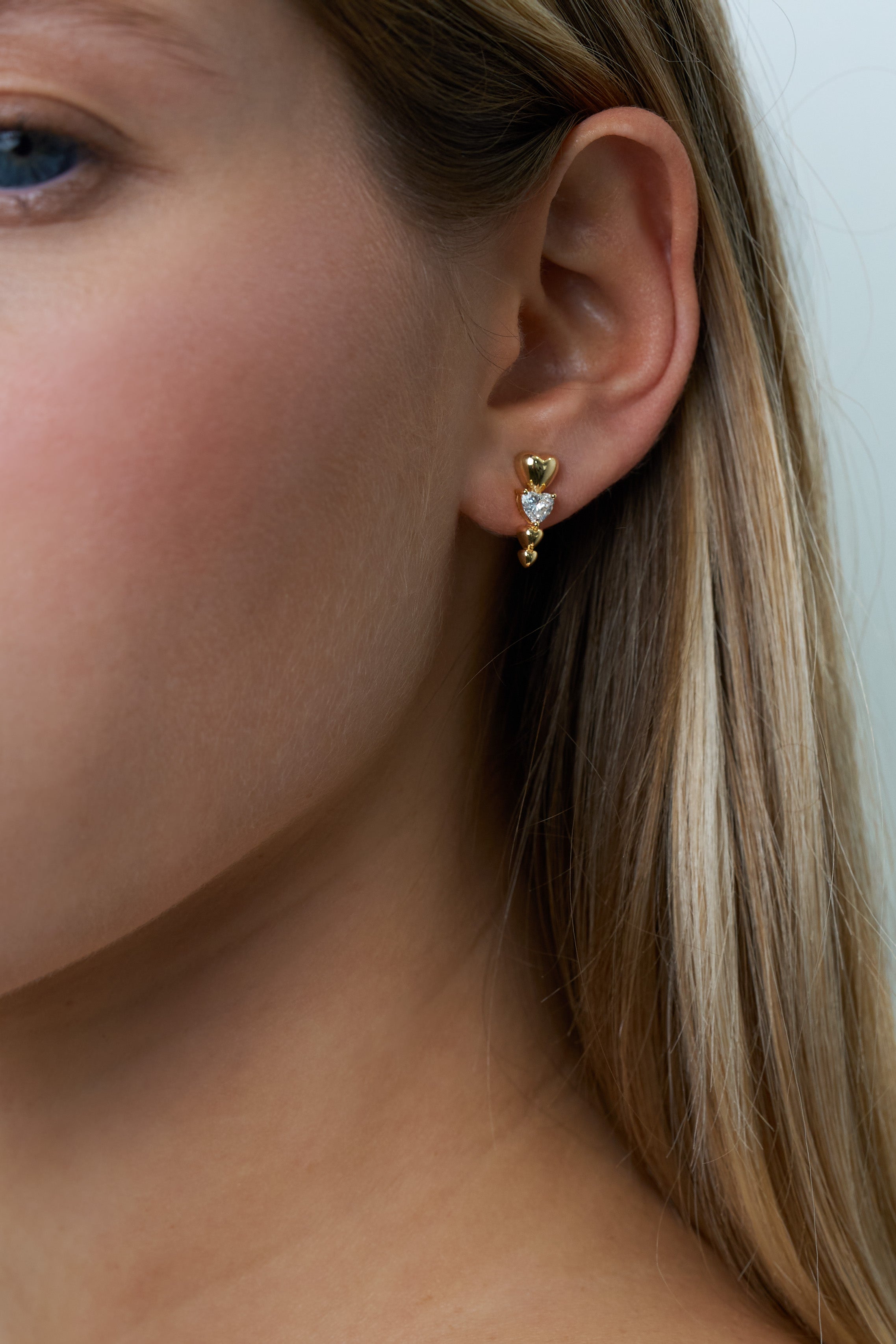 עגילי זהב 18 קראט בשיבוץ יהלומים בצורת לב