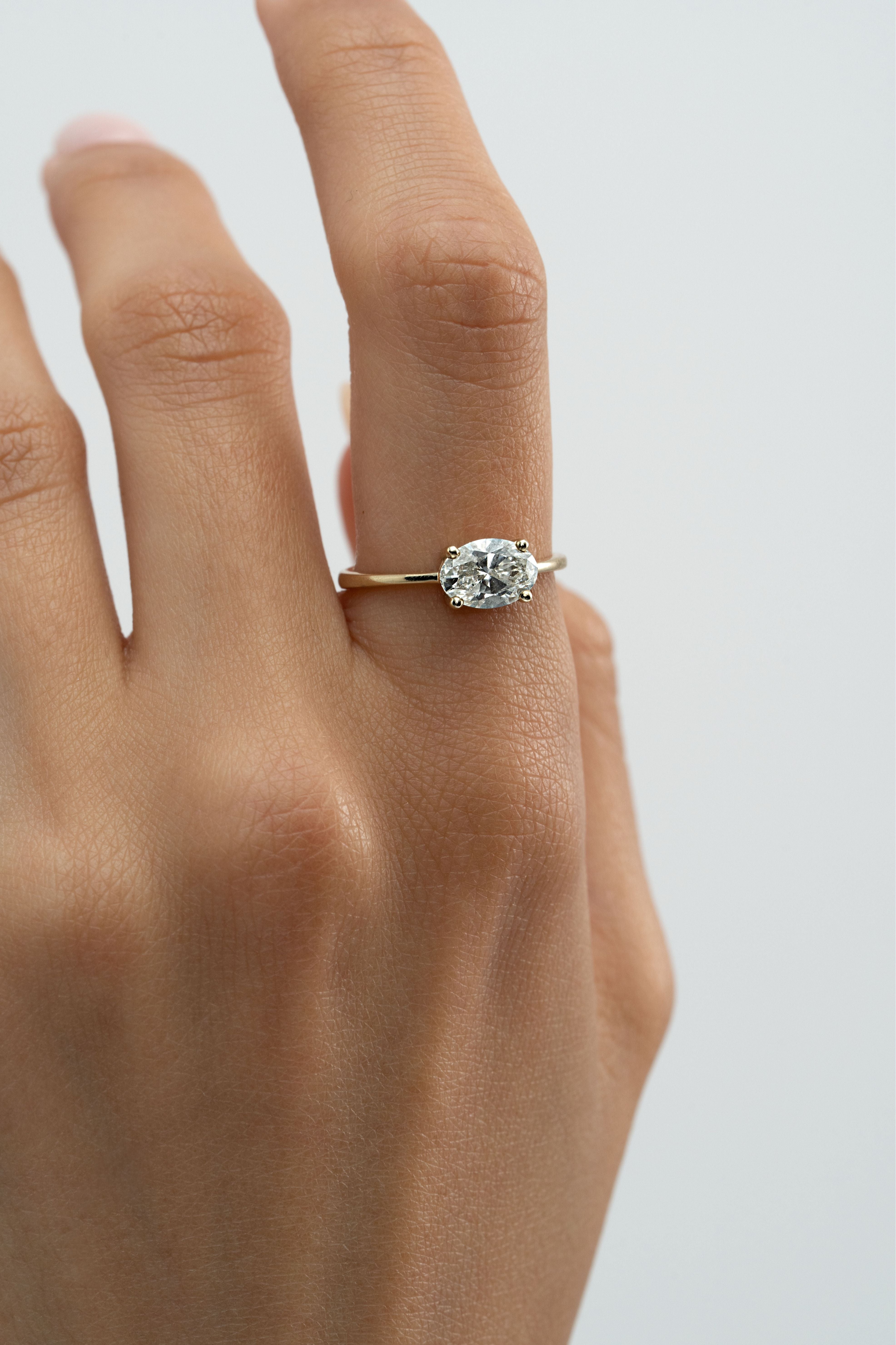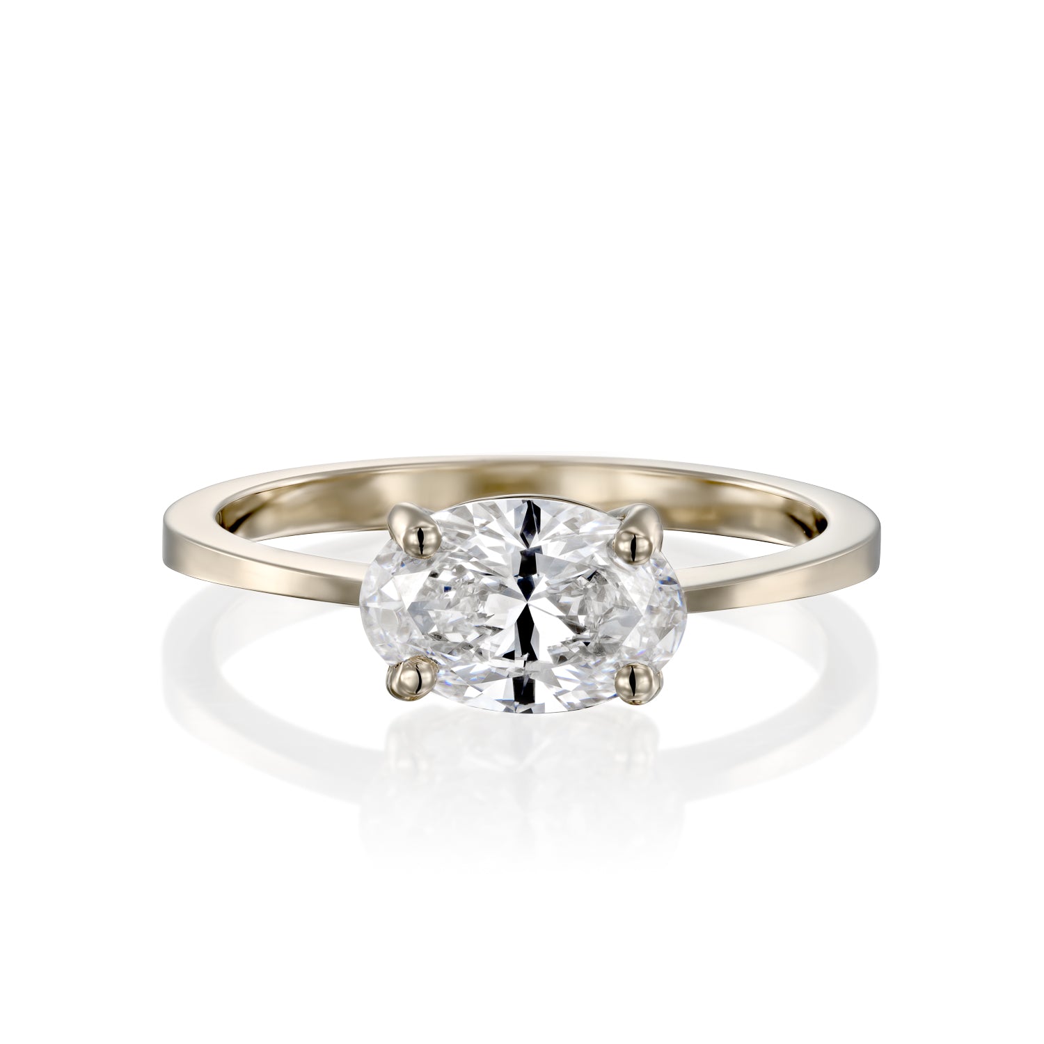 טבעת זהב 18 קראט משובצת יהלום אובל מאוזן