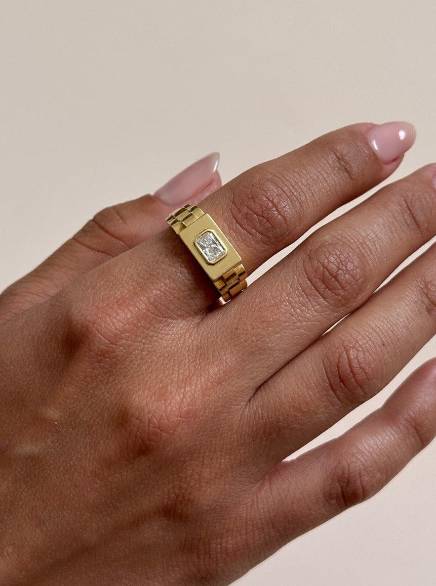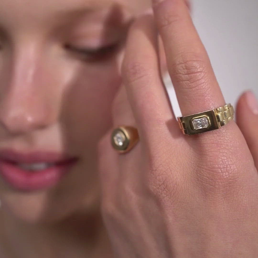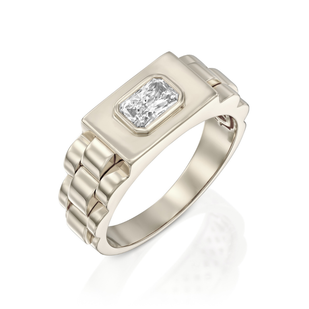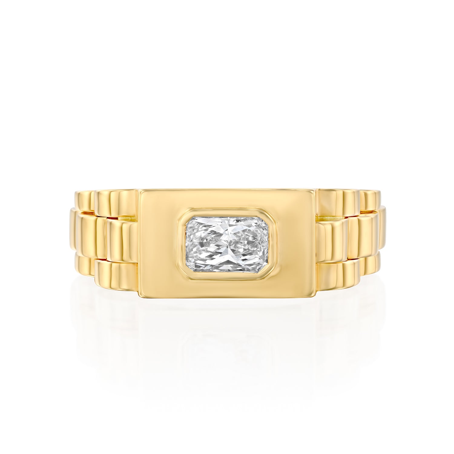 טבעת חותם זהב 14 קראט משובצת יהלום ראדיאנט 0.50 קראט