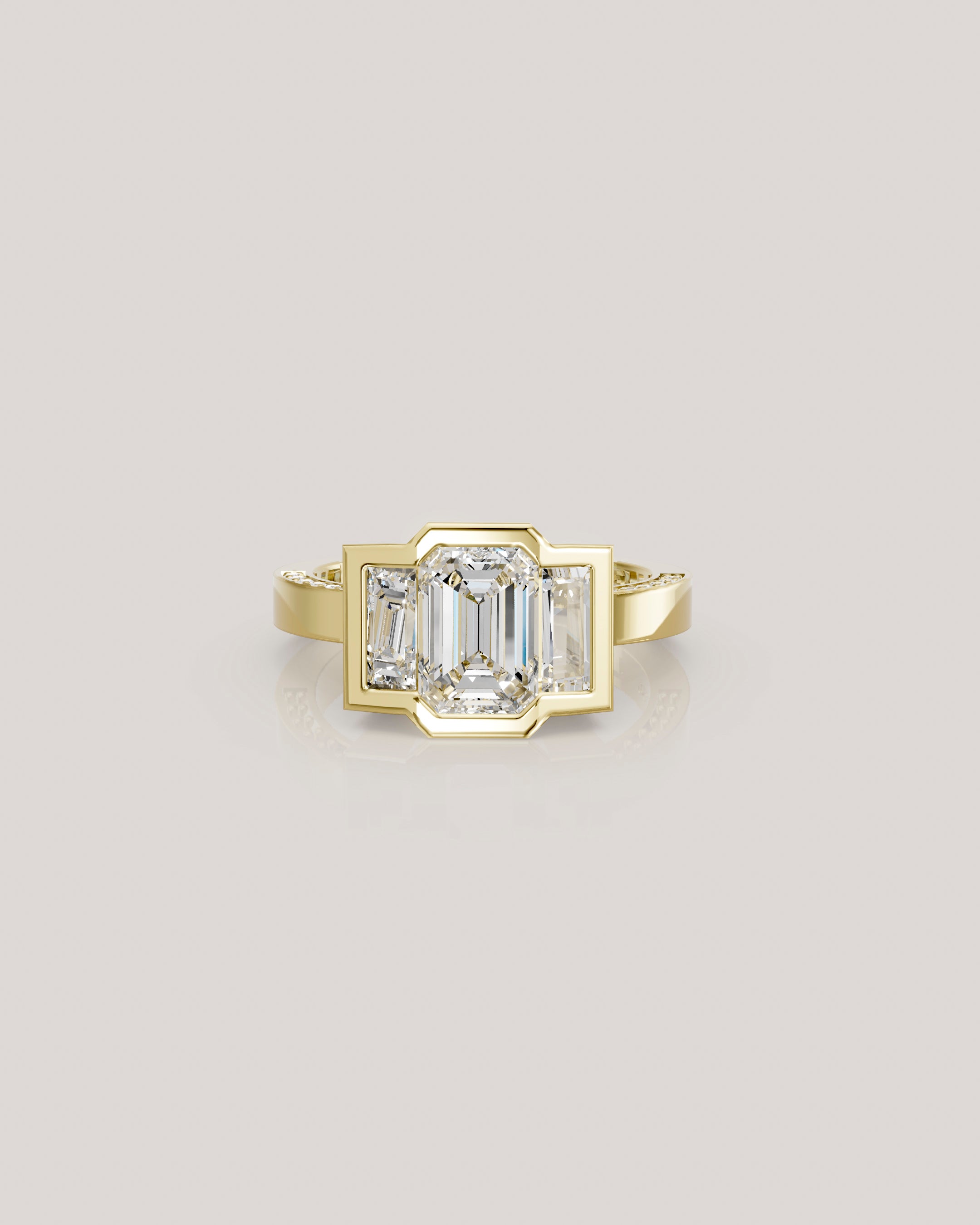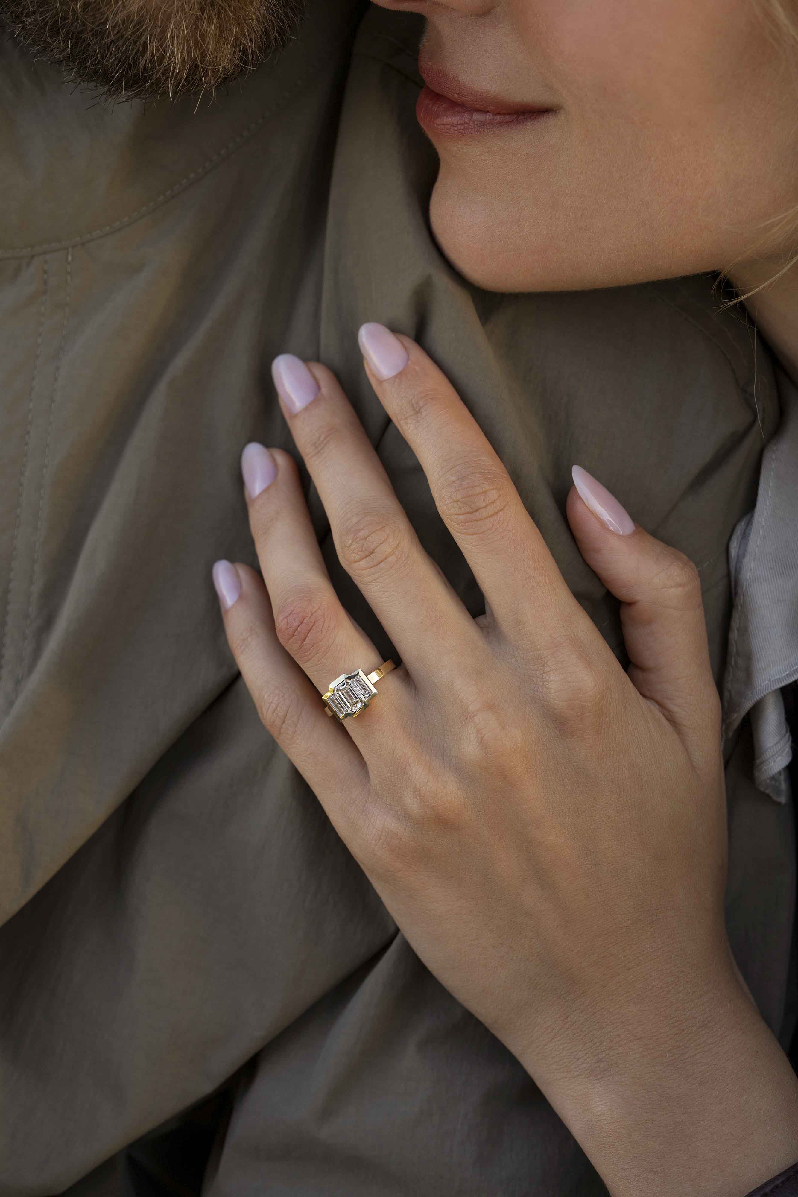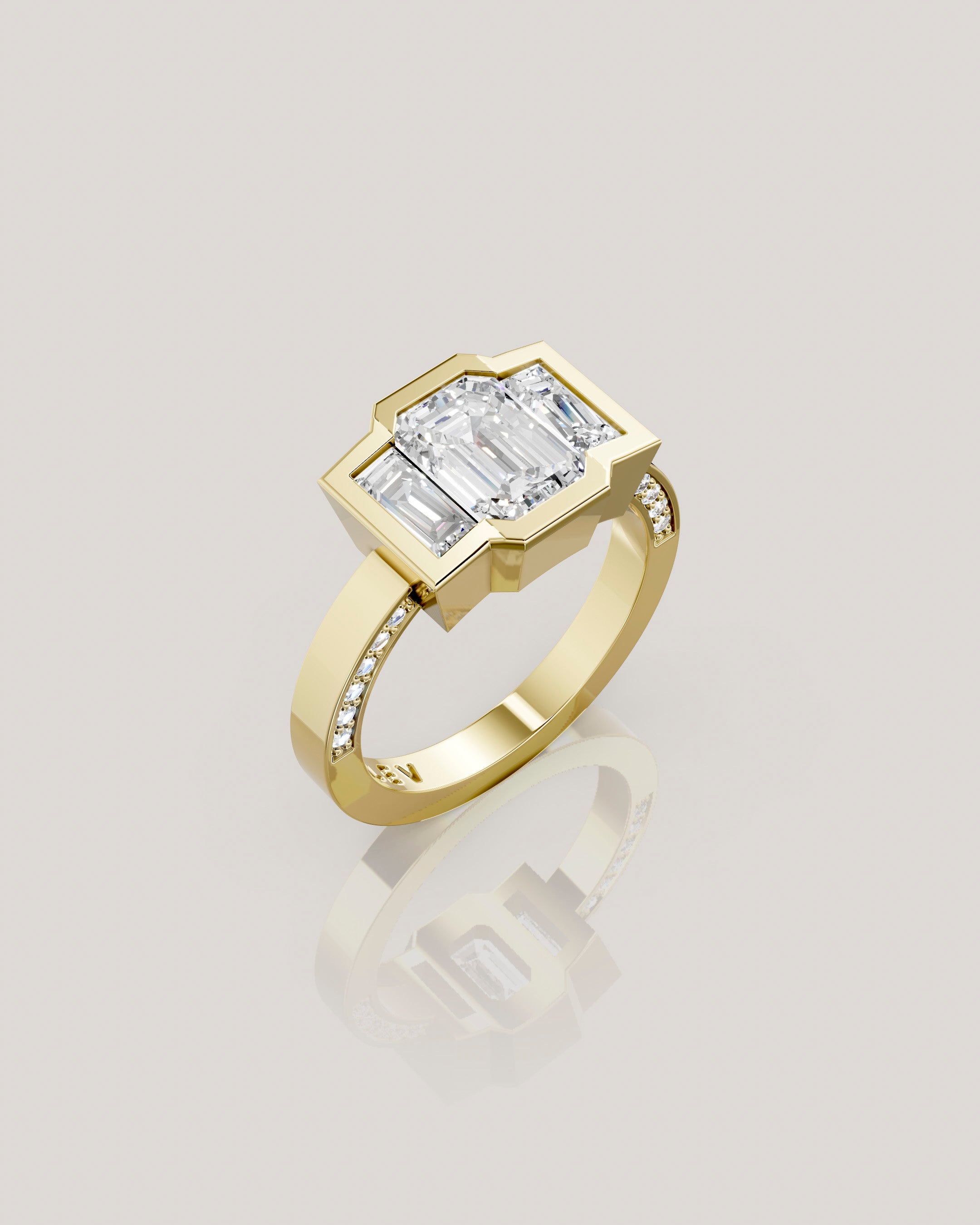 טבעת זהב 18 קראט משובצת יהלום אמרלד מרכזי